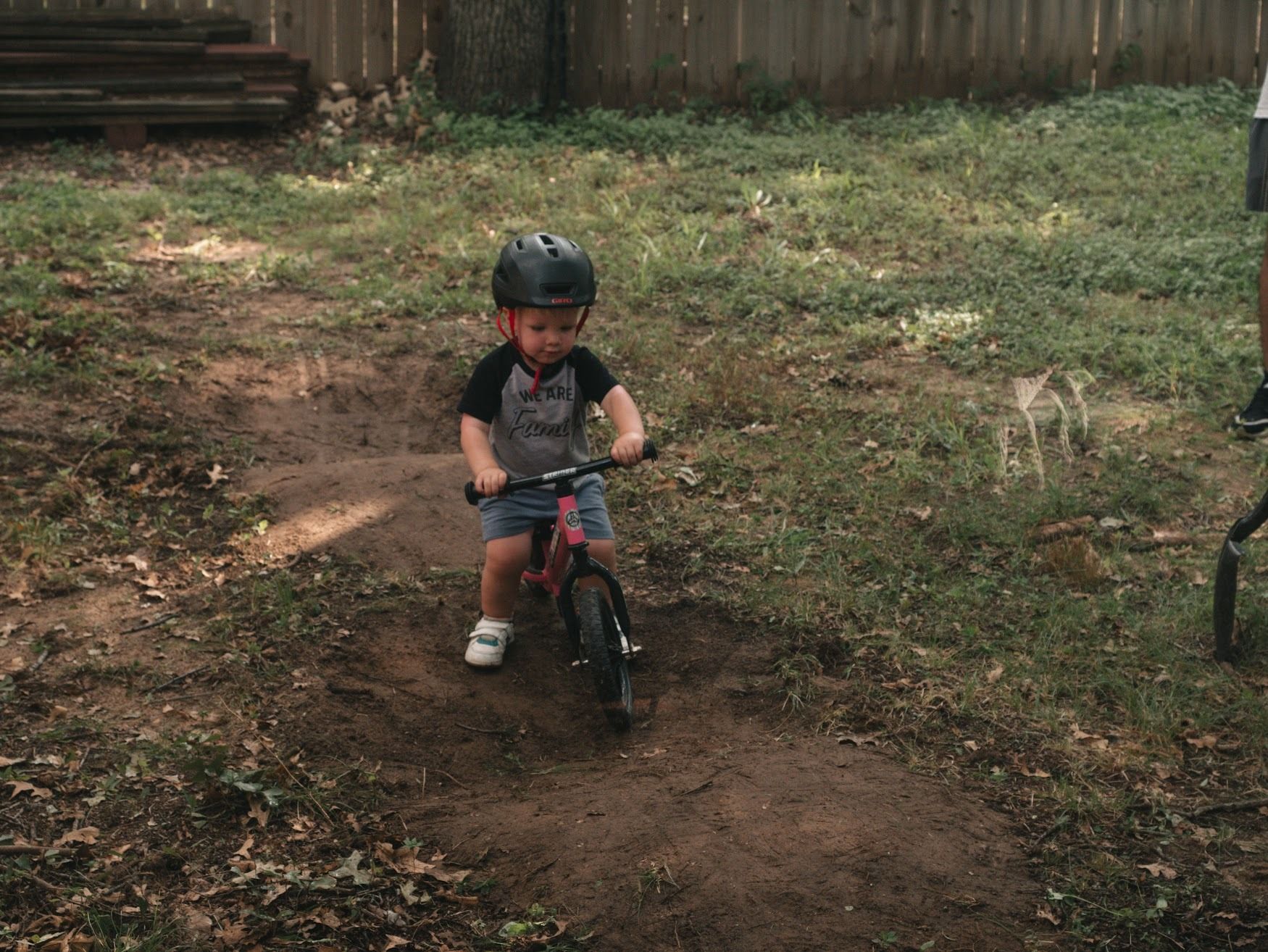 Can’t resist putting a little Elias photo in. Learning to ride his little track.